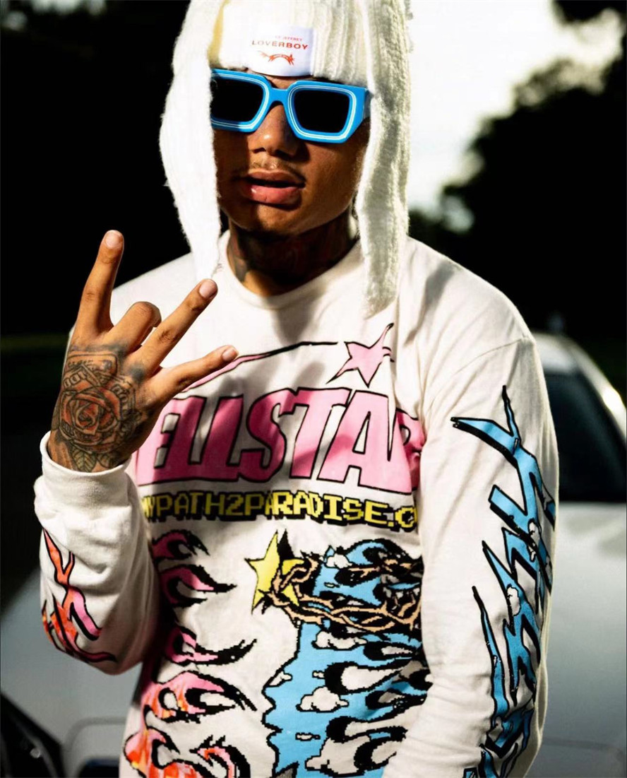 1:1 quality version Hellstar 1996 Pixel Letter Logo Long Sleeve T-Shirt with NFC Tag (Physical Chip)